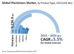 As predicted by TMR analysts, the global plasticizers market, estimated to be worth US$14.85 bn in 2015 is expected to reach US$23.87 bn by 2024. Over the forecast duration from 2016 to 2024, the global market is likely to exhibit a 5.50% CAGR.
