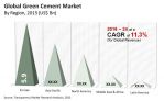 As projected by TMR analysts, the global green cement market to exhibit immense growth potential rising at 11.3% CAGR during the forecast period, which is 2016 to 2024. The market is expected to rise from its initial valuation of US$14.80 bn to reach a value of US$38.10 bn by 2024.