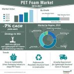 The global PET foam market is driven by factors such as rise in the demand for these foams in various applications; increase in usage of PET foams as alternatives for polystyrene, polyurethane, polymethacrylamide, and polyetherimide foams; and the environment-friendliness and reliability of these foams.