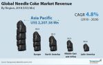 The research report states that the global needle coke market will exhibit a steady CAGR of 4% for the given projection period of 2018 to 2026. With this rate of growth, the market is expected reach the mark of US$5.18 bn by the end of 2026. In addition to this, the coke needle market will attain a valuation of 1.43 million tons in terms of volume sale by the end of the forecast period.